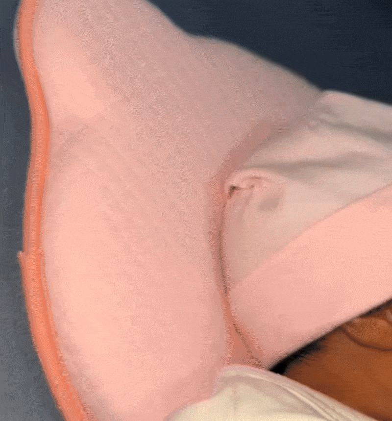 Perna susține capul bebelușului în poziție corectă, distribuind presiunea uniform și prevenind deformările.